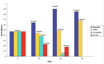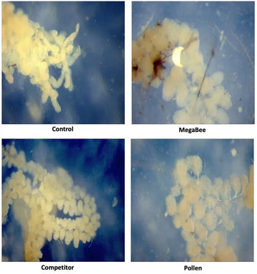 Research has shown these glands take approximately three days to develop in female worker bees and peak around the 6-10 day mark. We wanted to see how long these glands would stay viable when bees were fed MegaBee versus other products. The results are quite surprising.