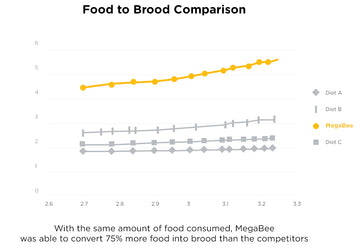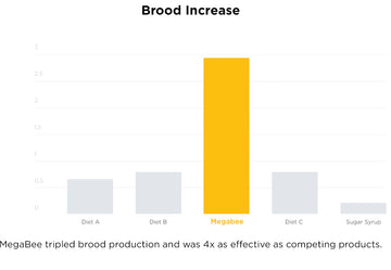 The study shows that patties were consumed at the same rate, but hives fed MegaBee consistently produced more brood & had larger colony sizes than the competitors. We often hear beekeepers talk about how fast a hive eats something, "I put the patty down and BOOM within days it was gone." But more important than how fast they consume something is what that food is able to do once eaten. MegaBee's success lies in its ability to maximize nutritional absorption and gives bees quality food that their bodies can put to work...not junk food they end up burning right through.